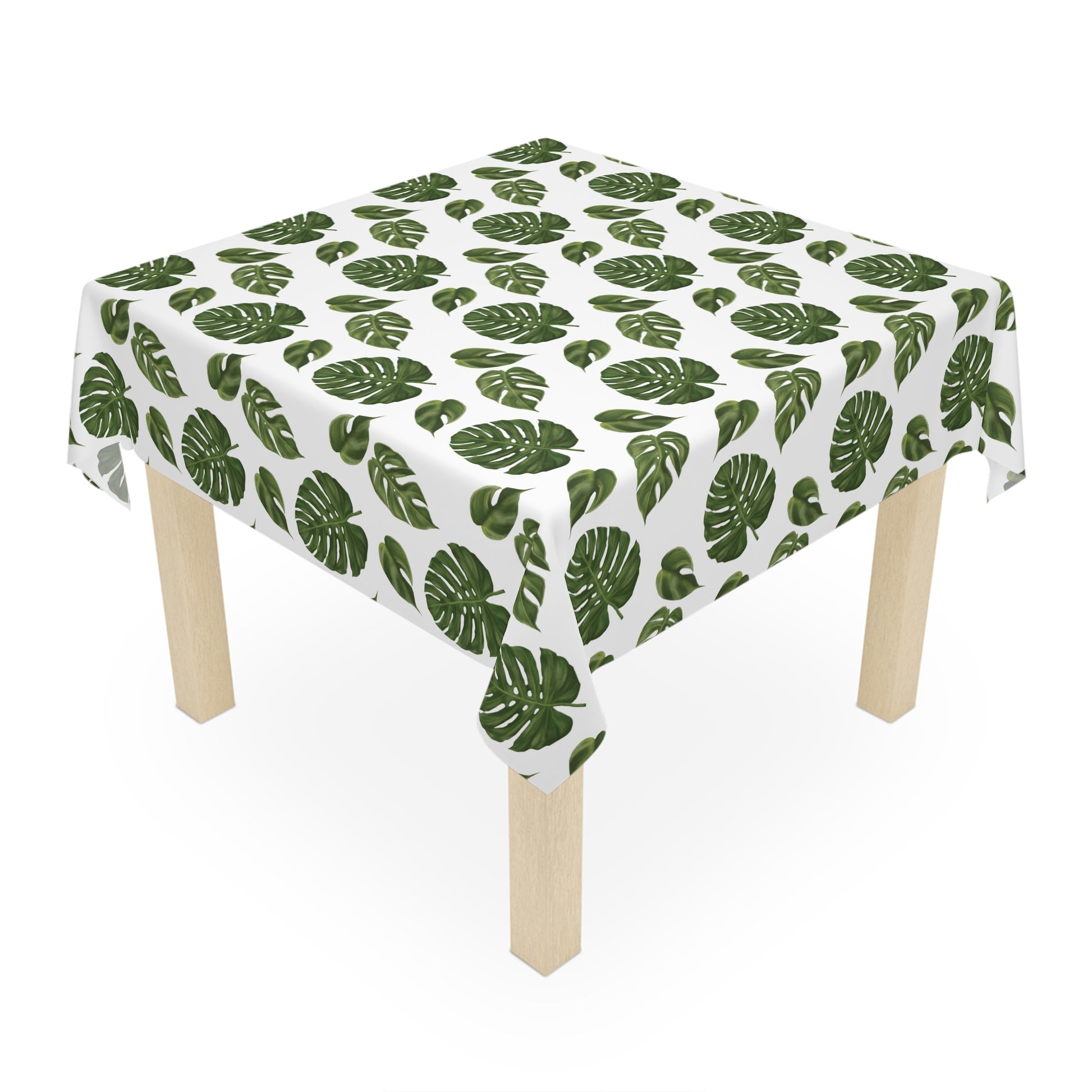 Transform your dining area into a tropical paradise with this white tablecloth featuring a vibrant monstera leaf print. Perfect for bringing the islands home with you, vacation rentals, summer gatherings, luau parties, and outdoor picnics, this lightweight and durable tablecloth adds a touch of nature to your decor.