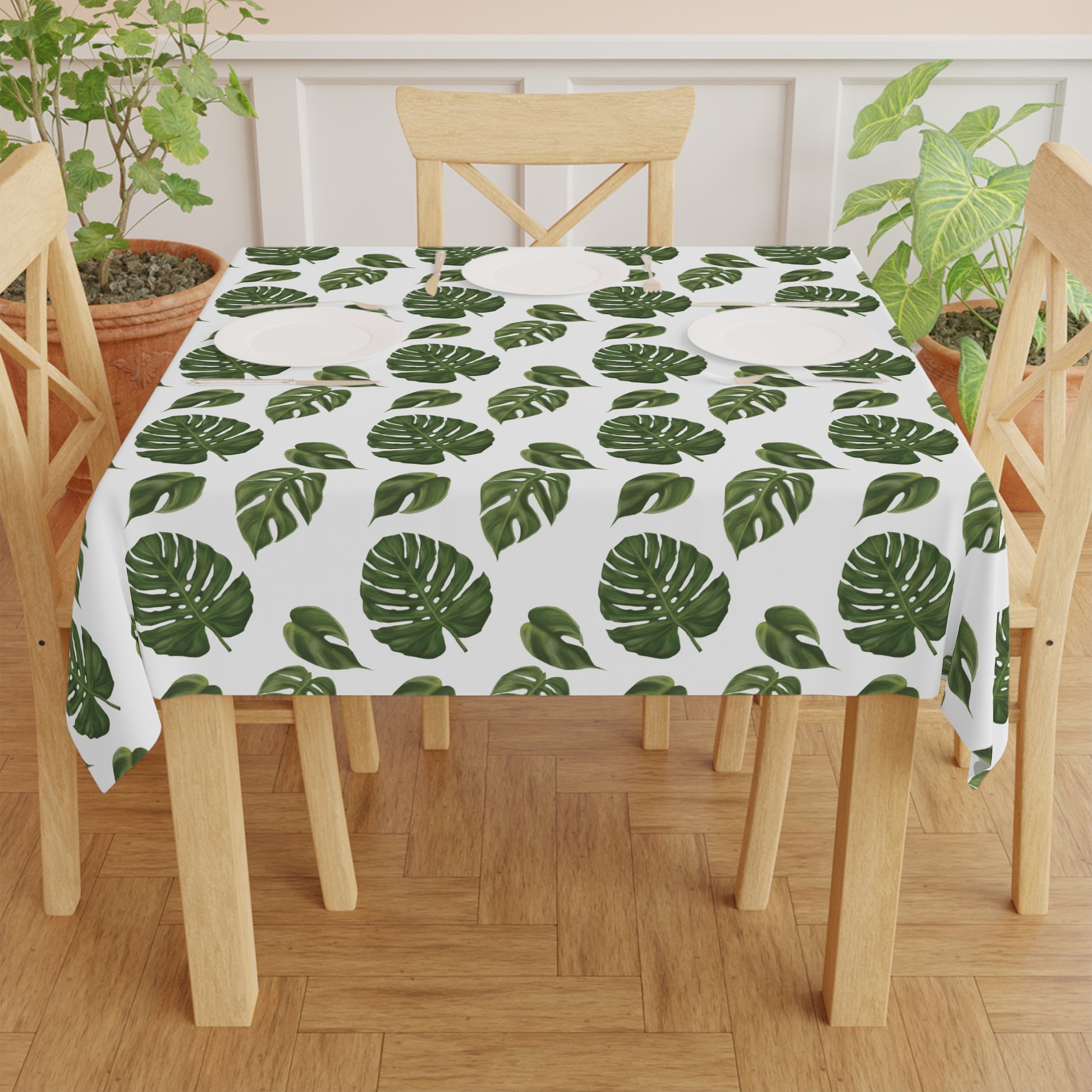 White Monstera Leaf Tablecloth
